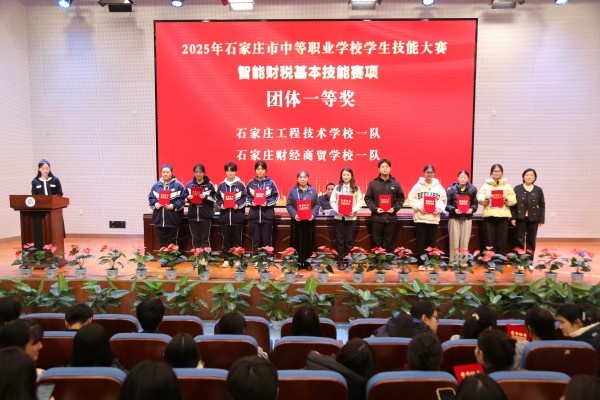 本次大赛由全市12所中等职业学校的21支代表队同台竞技。经过一天的紧张角逐,依托智能化评分系统的公正评判,最终评选出团体一、二、三等奖。其中,石家庄工程技术学校1队、石家庄财经商贸学校1队荣获团体一等奖;石家庄财经商贸学校2队、河北经济管理学校1队、河北商贸学校1队、河北经济管理学校2队荣获团体二等奖;石家庄工程技术学校2队、河北商贸学校2队、藁城区职业技术教育中心2队、赵县综合职业技术教育中心2队、石家庄财经职业学院1队、赵县综合职业技术教育中心1队荣获团体三等奖。