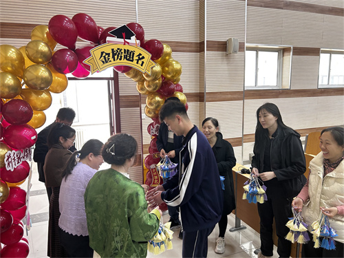 大会尾声,一系列充满寓意的环节将氛围推向高潮。班主任们手持艾草粽包,一一发放到同学们手中,寓意 “高中”,承载着老师们的深情祝福。随后,同学们在老师的带领下穿过 “成功门”。门上彩色气球与祝福丝带随风飘动,象征着美好的未来在向他们招手。穿过 “成功门” 后,同学们来到签名处,在条幅上写下自己的名字和美好愿景,有的许下 “单招必胜,梦想成真” 的心愿,有的表达对老师同学的感恩之情,每一笔都饱含着对未来的憧憬。