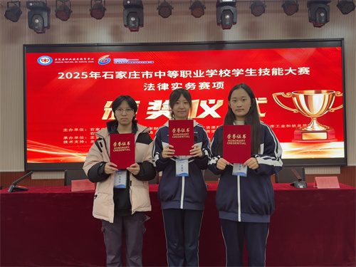 11月6日,2025年石家庄市中等职业学校技能大赛法律实务比赛在正定职业教育中心成功举办。全市13支参赛队伍同台竞技,我校派出的两支代表队,凭借扎实的专业功底与出色的实战能力脱颖而出,最终一队和二队皆荣获团体二等奖。