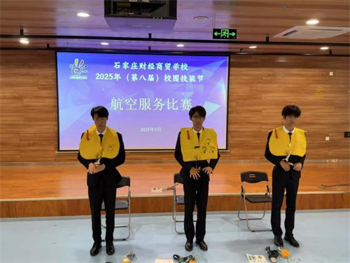 5月21日,石家庄财经商贸学校校园技能节之航空服务比赛在综合楼音乐厅举行。30名选手同台竞技,围绕“礼仪风采展示”与“航空安全演示”两大核心赛项展开激烈角逐,充分展现了新时代航空服务专业学生的职业素养与技能水平。