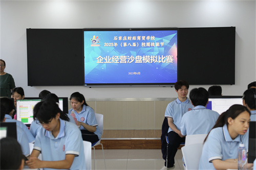 近日,石家庄财经商贸学校校园技能节之企业经营沙盘模拟比赛在财经专业部数字财务创新虚拟仿真实训基地举行。这场沉浸式商业实战演练,以数字化仿真技术还原企业运营全流程,为财经专业学子搭建了 “知行合一” 的技能展示舞台。