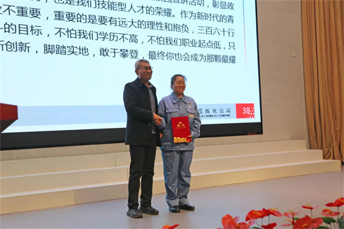 在专家报告中,石晓棠大师以《永不停止的攀登》为题,讲述了自己 31 年扎根石油炼制一线的成长故事。从技校毕业的普通操作工,到执掌催化重整装置的技能大师,她历经司泵、主操、工艺主管师、首席技师等多个岗位历练,主管 120 万吨/年连续重整装置首次开工等多项重大项目,主导完成 20 余项技术攻关,手握 3 项国家专利,累计为企业降本增效超 7000 万元。她分享了 2002 年参与装置改造时减重 10 斤、徒步奔波的坚守,2014 年身兼两职保障两套装置顺利切换的担当,以及赴法国学习开拓视野的感悟,用“学无止境”“坚守初心”“感恩担当”诠释了工匠精神的深刻内涵。同时,她勉励同学们无论起点如何,只要脚踏实地、刻苦钻研,就能在平凡岗位上成就不凡价值。